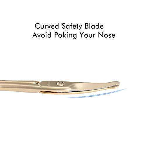 LIVINGO 3.75″ Small Safety Facial Nose Hair Scissors, Curved Blade with Rounded Tip Stainless Steel for Manicure Cuticle, Eyebrow, Dry Skin (Gold)(S – Nose Curved Scissors)