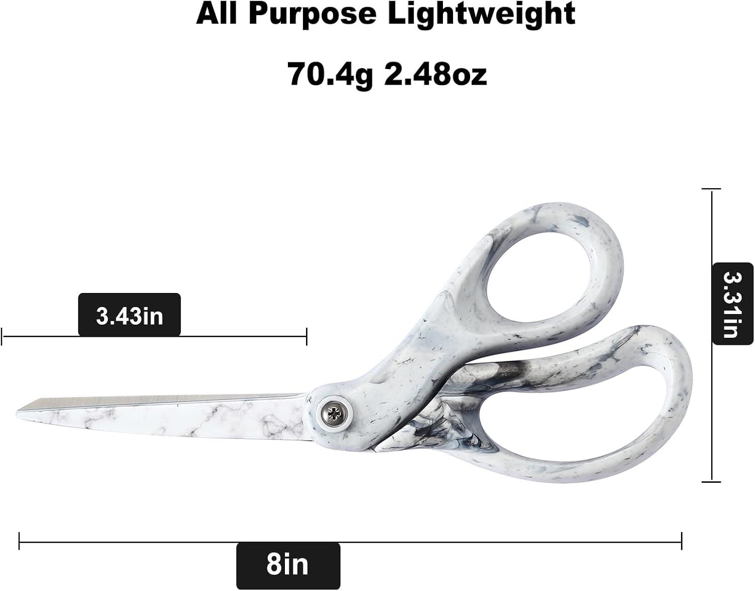 LIVINGO 8 Inches Scissors for Office - Sharp Heavy Duty Shears All Purpose for Sewing Crafting Cutting Fabric Paper, Stainless Steel Blade, Smooth Handle, Marble White Color(Marble White)