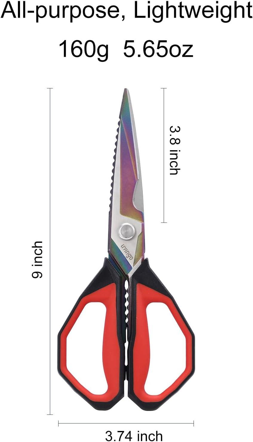 LIVINGO Heavy Duty Kitchen Scissors - Titanium Coated Sharp Poultry Shears Multipurpose for Cutting Chicken Bones, Meat, Vegetable Food, 9.5 Inches Comfortable Grip with Safe Lock(D - Kitchen Scissors)