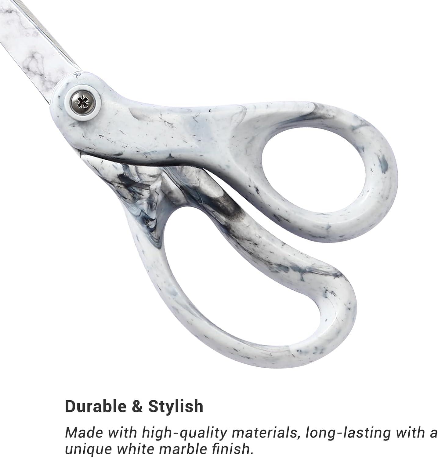 LIVINGO Scissors All Purpose - 8" Sharp Heavy Duty Shears for Office Crafting DIY Cutting Paper, Fabric, Stainless Steel, Comfort Grip, Gradient Blue(Marble White)